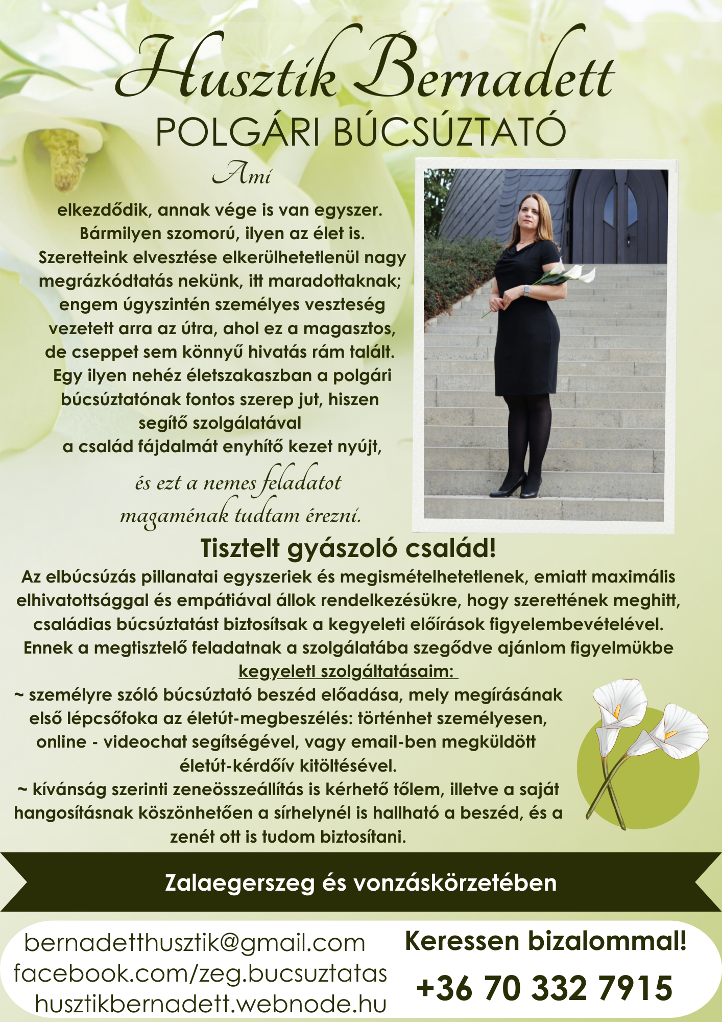 Göcseji úti köztemető, valamint Botfa, Zalabesenyő, Bazita, Szenterzsébethegy: +36 30/836-2564